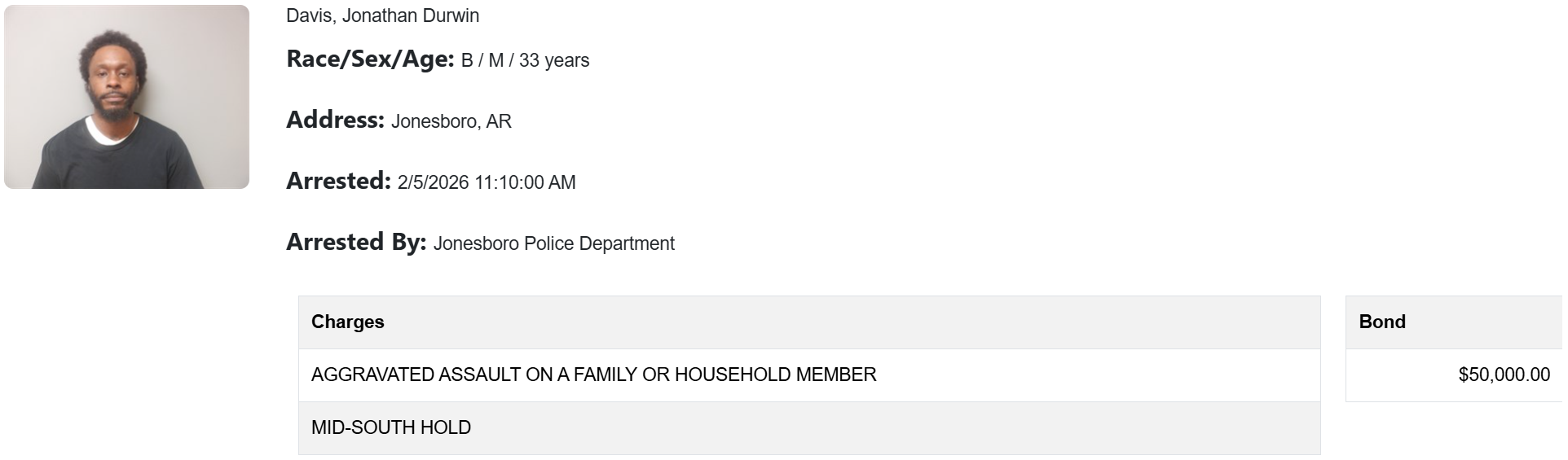 According to the probable cause affidavit, on Feb. 5, Jonesboro police spoke to a victim who said her boyfriend, Davis, had pointed a gun at her head and threatened to kill her because he thought she was cheating on him. She added that Davis took her phone and told her she could not leave until they “worked it out.”
